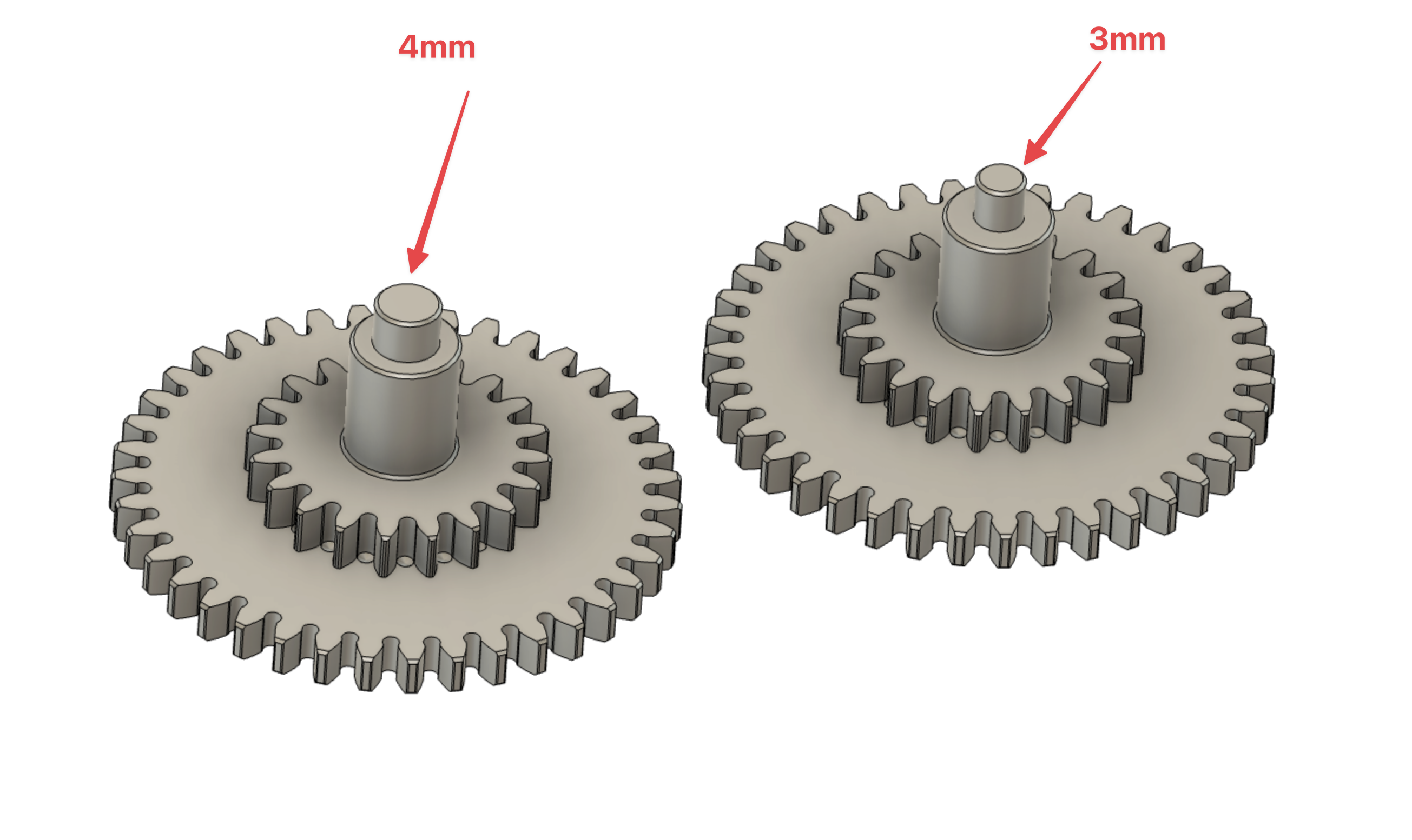 Rozdíl v průměrech osiček ozubených kol