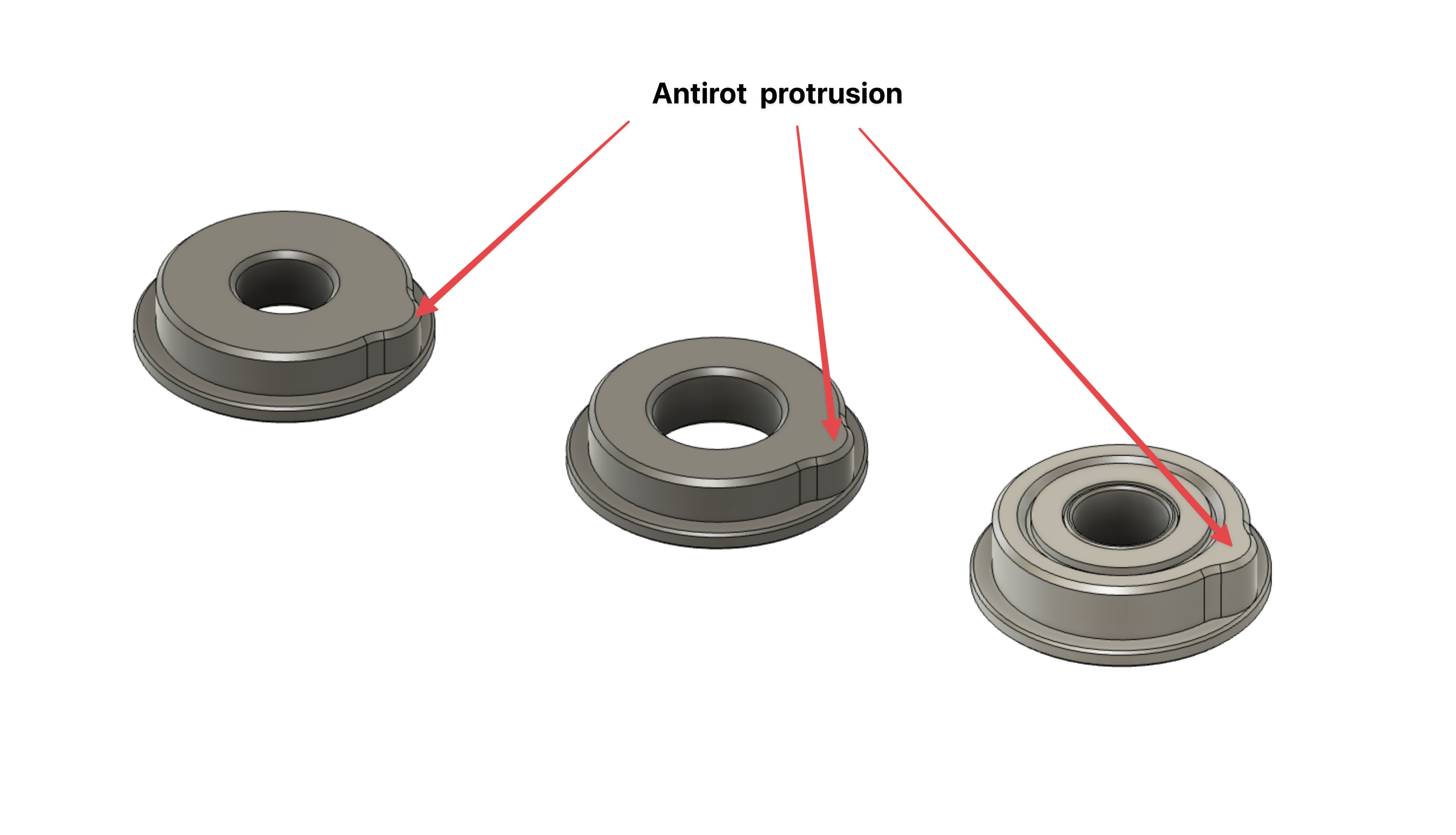 Hlavním důvodem byla snaha eliminovat častý problém s protočením kulatých ložisek a následným vydíráním otvorů v mechaboxu. Řešení Antirot tento problém účinně řeší, čímž nejen zamezuje protočení ložiska, ale v kombinaci s drážkou pro lepidlo (popsanou níže) představuje dlouhodobé a spolehlivé řešení.